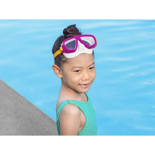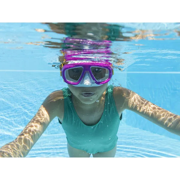 Fedezze fel gyermekével a víz alatti kalandokat ezzel a kényelmes és biztonságos maszkkal, amely támogatja a magabiztos úszást és a játékos merüléseket.