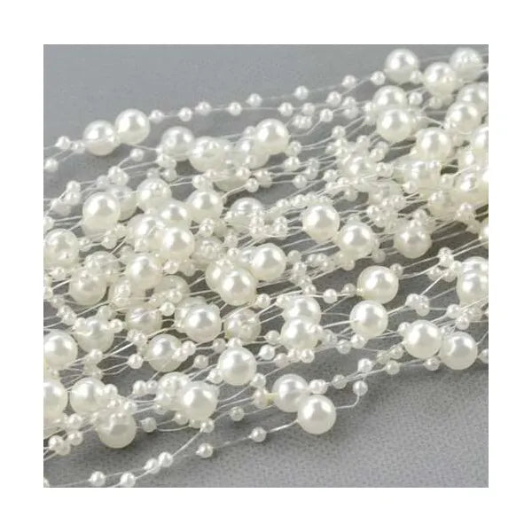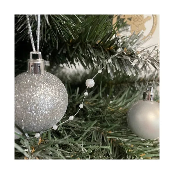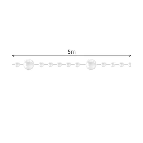 Gyöngy karácsonyfa füzér, 5 m, gyöngyfehér dekoráció