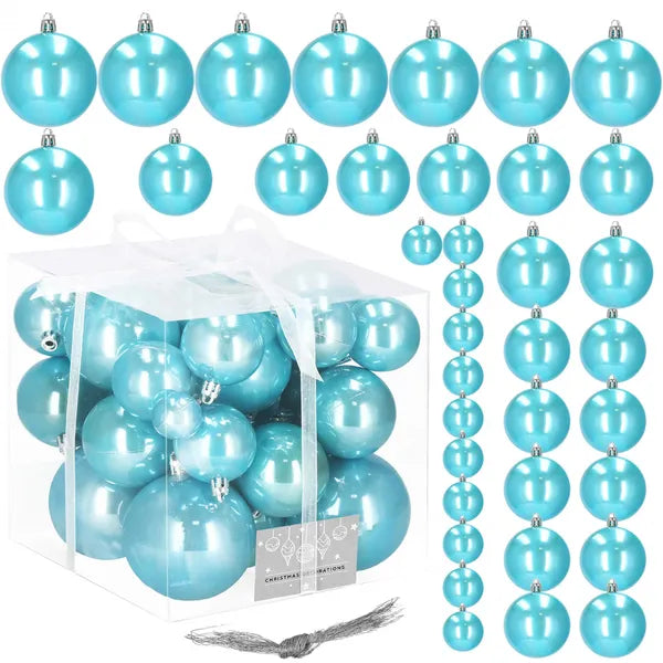 Gyöngyházkék műanyag karácsonyfadísz gömbkészlet 37 db, 4–8 cm
