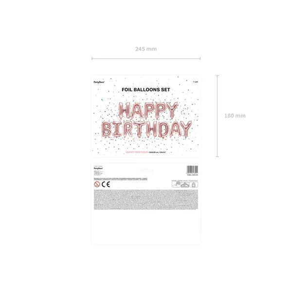 Happy Birthday rózsaarany fólia léggömb dekoráció, 340×35 cm