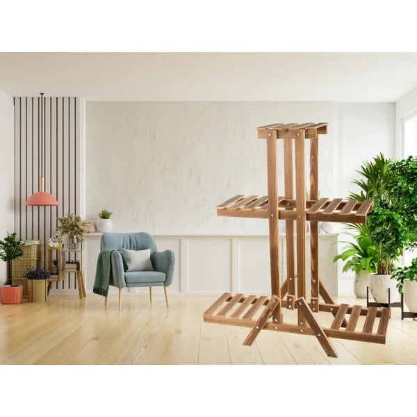 Mutasd be növényeidet stílusosan ezzel a háromszintes, masszív fa virágtartó állvánnyal! A 85 cm széles, 28 cm mély és 98 cm magas polcrendszer meleg barna árnyalata harmonikusan illik a nappaliba, az erkélyre vagy a kertbe.