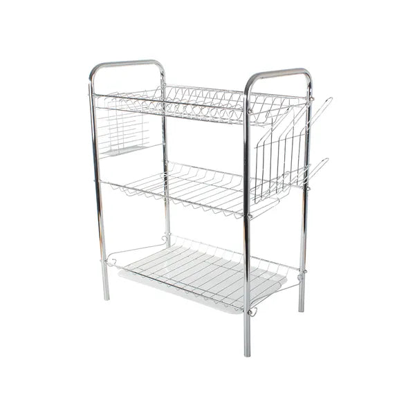 Háromszintes fém edényszárító ezüst színben, csepegtetőtálcával 42,5 cm