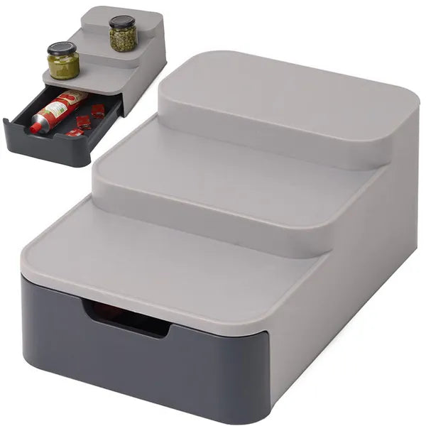 Háromszintes, fiókos konyhai rendszerező, csúszásmentes, szürke műanyag