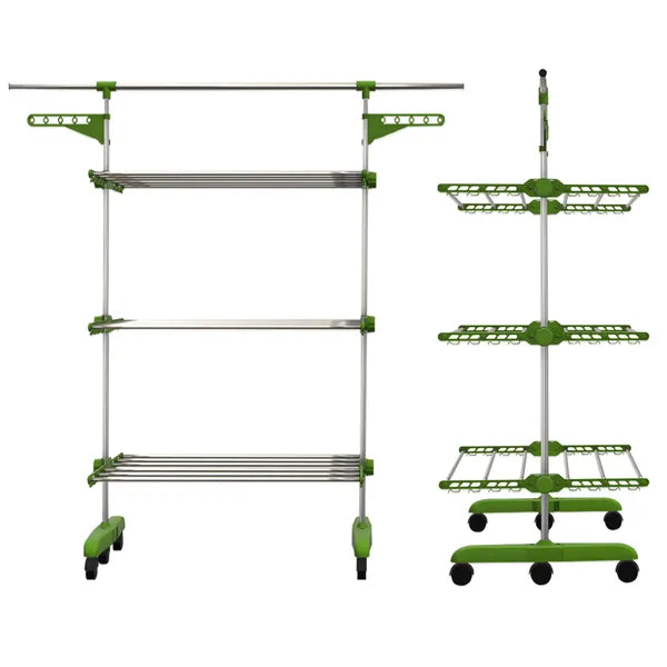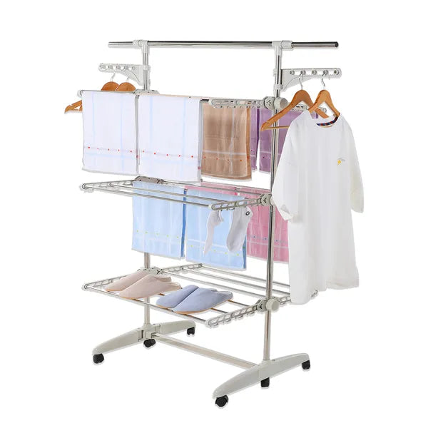 Háromszintes, összecsukható ruhaszárító állvány kerekekkel, 20 m kapacitás