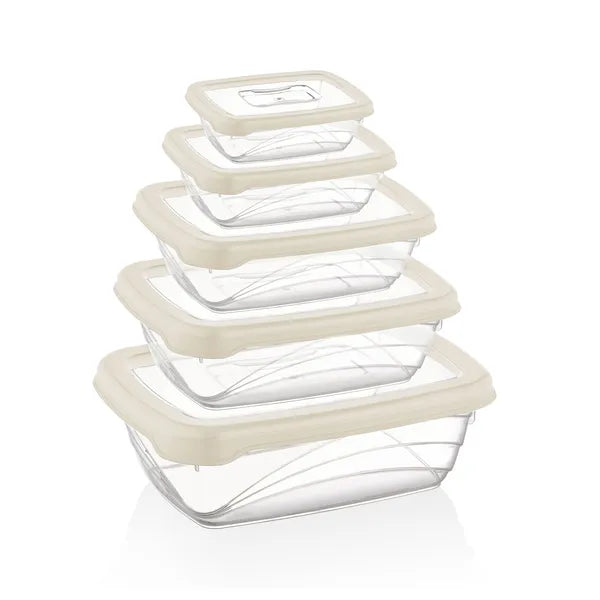 Herzberg 5 részes légmentes ételtároló doboz szett, elefántcsont