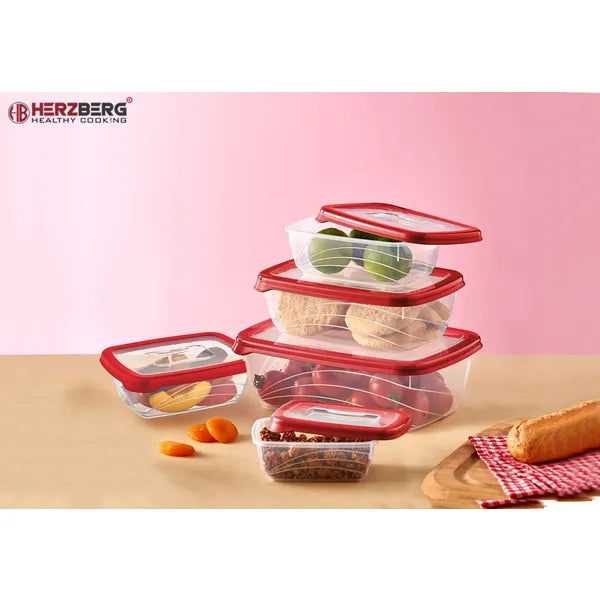 Herzberg Bio Saver 5 részes légmentes BPA-mentes ételtároló doboz szett, piros