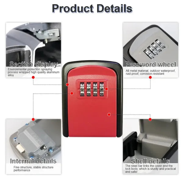 - 4 jegyű kombinációs zár: 10 000 variáció, kulcs nélkül nyitható, könnyen átállítható.