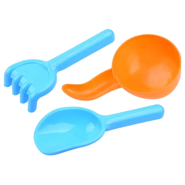 Homokmalom készlet lapáttal, gereblyével és szitával, műanyag