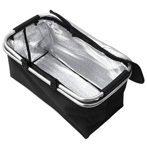 A hőszigetelt, összecsukható piknikkosár ideális választás szabadtéri étkezésekhez, strandoláshoz vagy bevásárláshoz. A vastag alumíniumfóliás bélés órákig megőrzi az ételek és italok hőmérsékletét, miközben a strapabíró Oxford anyag és az alumíniumkeret gondoskodik a tartósságról.