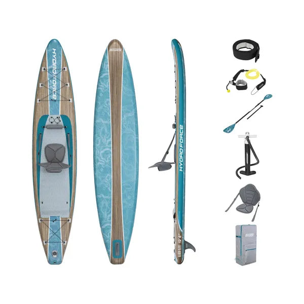 Fedezd fel a tavak vagy tengerpartok nyugalmát a Hydro Force Glider Elite 2 az 1-ben felfújható SUP/kajakkal! A karcsú, 381×79×15 cm-es test könnyedén siklik, a cseppöltéses FortiFiber™ szerkezet pedig merev, mégis könnyű és táskában is elfér.