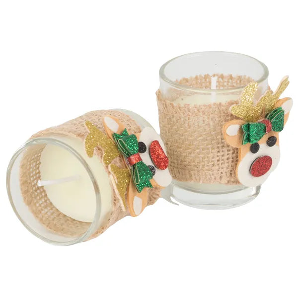 Illatos üveg gyertyaszett rénszarvas motívummal, 2 db 6×5 cm