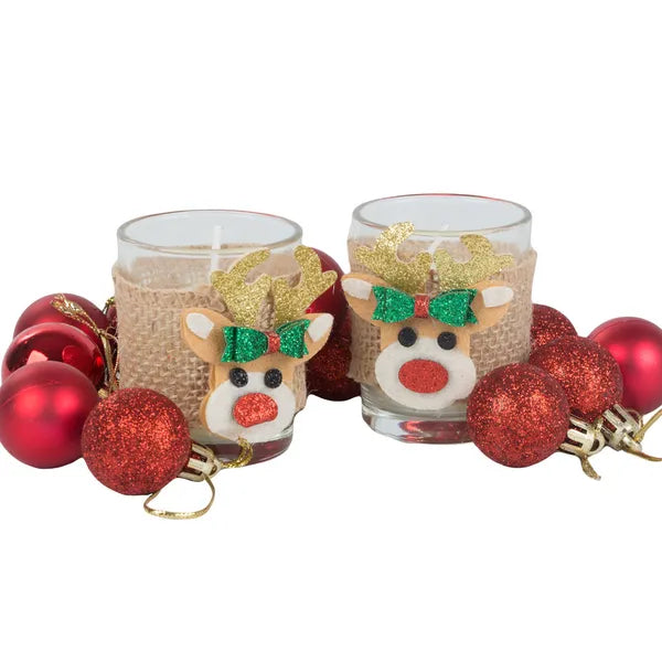 Hozd be otthonodba a karácsony melegét és illatát ezzel a bájos, rénszarvas díszítésű illatgyertya-párossal. A natúr juta szalaggal átkötött, áttetsző üveg mécsestartók arany agancsos, piros orrú rénszarvasa már ránézésre ünnepi hangulatot teremt.