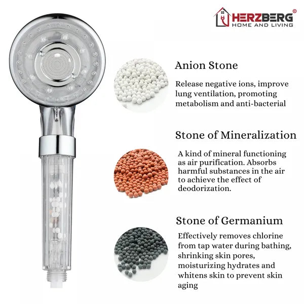 Ionos víztisztító zuhanyfej 4 funkcióval, cserélhető ásványgolyókkal, HG-8023
