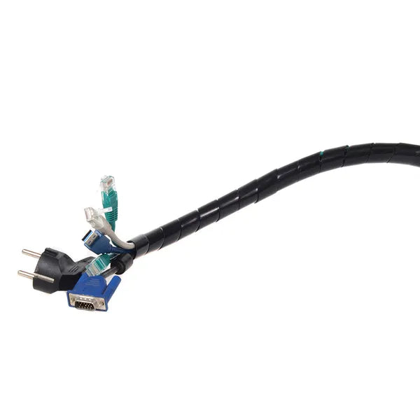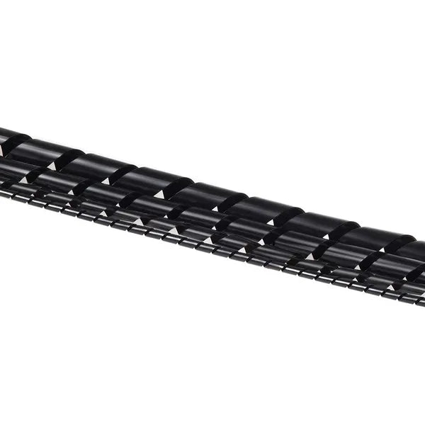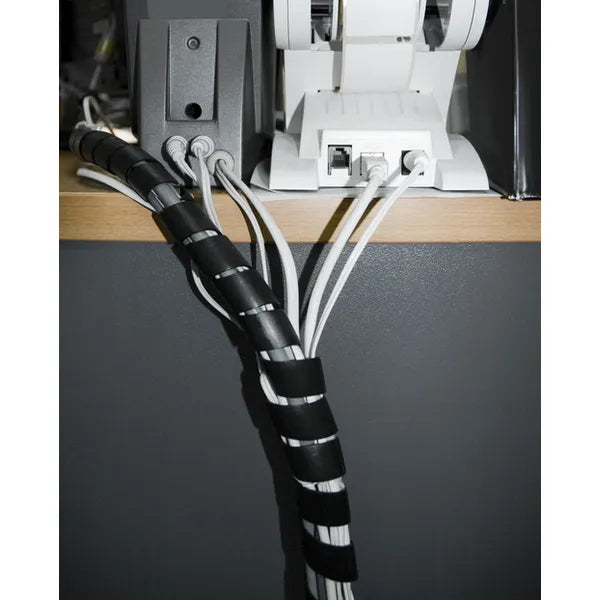 A rugalmas fekete spirál kábelrendező gyorsan egyesíti a kusza vezetékeket egy rendezett kötegbe, megóvva őket a sérülésektől és a portól. Ideális otthoni szórakoztatóelektronikánál, irodai munkaállomásoknál, műhelyben vagy akár gyártósoron.