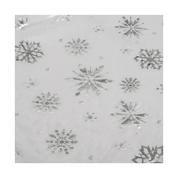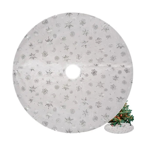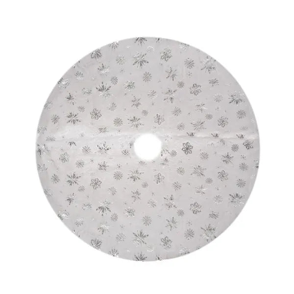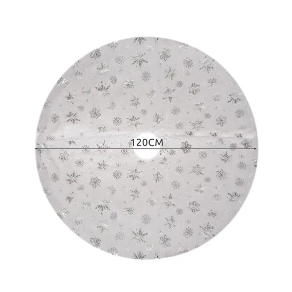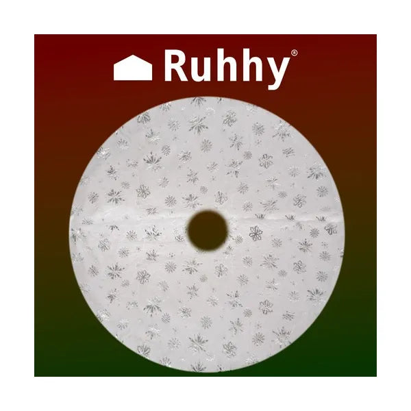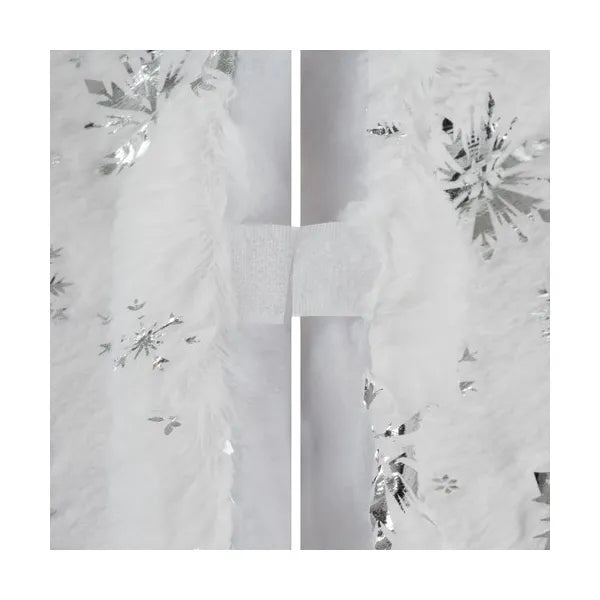 Beleborítja otthonát az ünnepi hangulatba ez a 120 cm átmérőjű, fehér-ezüst karácsonyfa alátét szőnyeg, amely lágy, szőrös poliészterből készült.