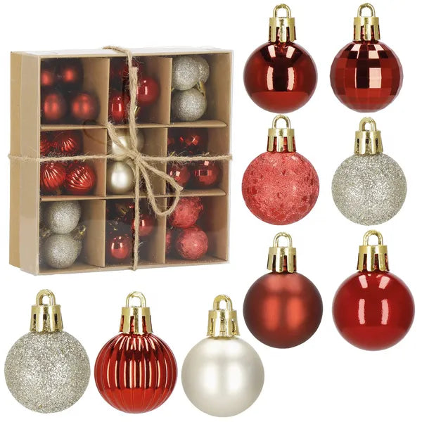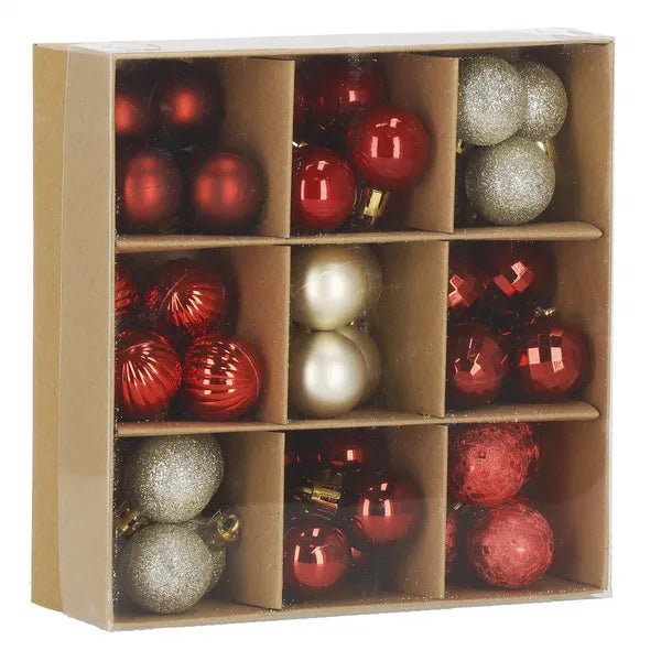 Öltöztesd ünnepi pompába a fát ezzel a sokoldalú, törhetetlen gömbdísz készlettel! A 3 cm átmérőjű, könnyű műanyag díszekkel a kisebb fenyők, asztaldíszek és adventi koszorúk is ragyoghatnak, miközben nem kell tartanod a törésektől.