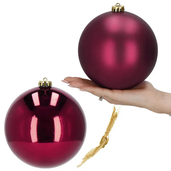 Dobd fel a karácsonyfa megjelenését ezzel a nagyméretű, piros gömbpárossal, amely egyszerre elegáns és strapabíró. A szett egy matt és egy fényes felületű díszt tartalmaz, így változatos fényjátékot biztosít a tűlevelek között. A könnyű, törhetetlen műanyag kivitelnek köszönhetően biztonságos választás gyerekek vagy háziállatok mellett is.