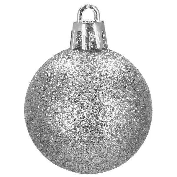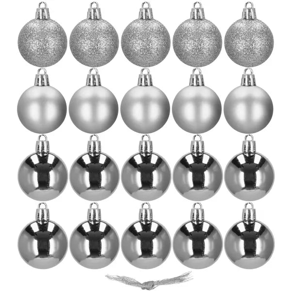 Az ünnepi fenyő igazi éke lehet ez a 20 darabos, 4 cm átmérőjű ezüst gömb készlet, amely matt, csillámos és fényes felületeivel változatos textúrát ad.
