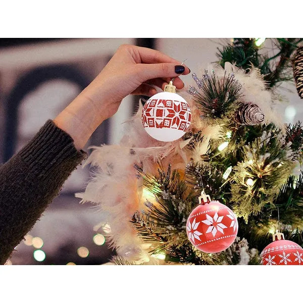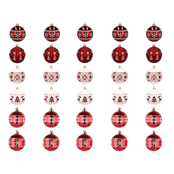 A karácsony hangulatát a tökéletesen feldíszített fenyő teszi teljessé. A 30 darabos, 5 cm átmérőjű, piros-fehér karácsonyfagömb készletben csillogó, matt és mintás díszek elegyednek, így változatos és harmonikus összhatást nyújtanak. A törhetetlen műanyag kivitelnek köszönhetően nem kell többé a szilánkok miatt aggódnod, ha leesik egy dísz – egyszerűen felakaszthatod újra.