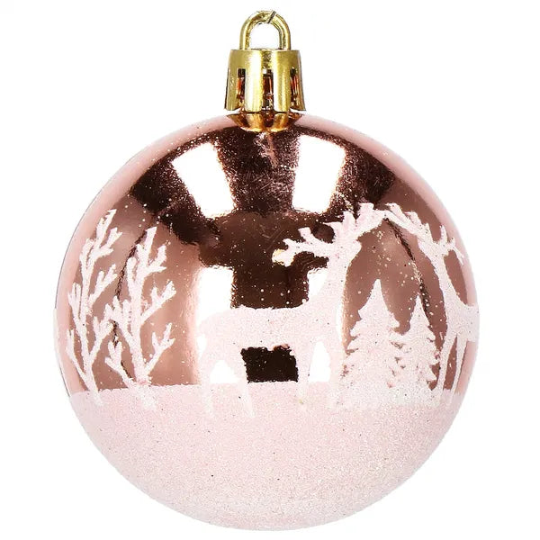 Teremtsen elegáns, mégis biztonságos ünnepi hangulatot ezzel a 24 darabos karácsonyfadísz gömbkészlettel! A 6 cm átmérőjű, arany-rózsaszín árnyalatú díszek négy különböző felületkialakítással érkeznek, így változatos textúrát és mélységet adnak a dekorációnak. A strapabíró műanyagból készült, törhetetlen gömbök ideálisak kisgyermekes családok és házi kedvencek mellett is.