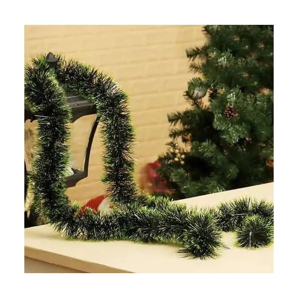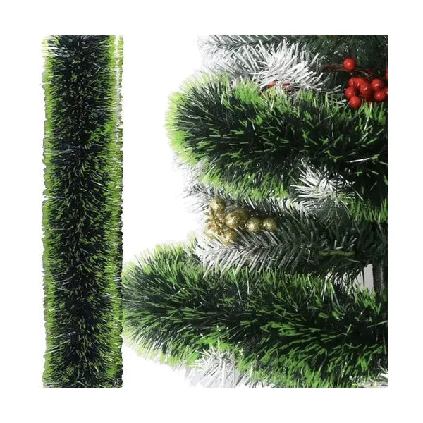 Karácsonyfafüzér zöld, 6 m hosszú, 15 cm vastag, kétárnyalatú műfenyő
