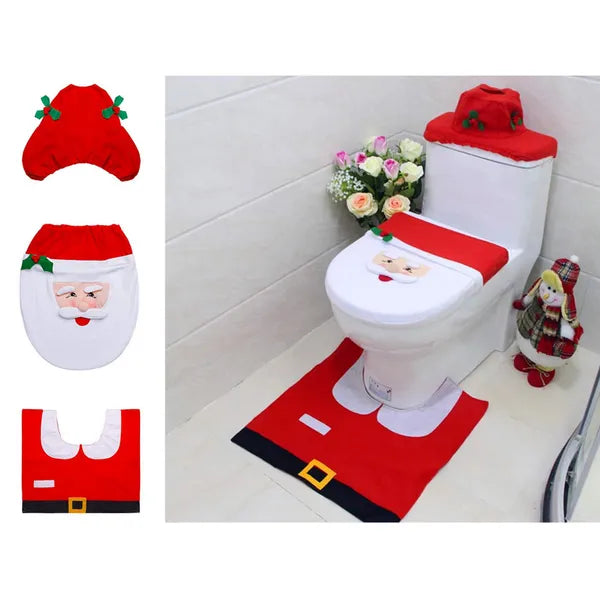 Karácsonyi 3 részes fürdőszobai szett – WC ülőke huzat, szőnyeg, tartályhuzat