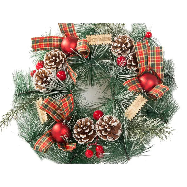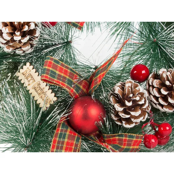 Karácsonyi ajtó- és falikoszorú, 30 cm, tobozokkal és díszgömbökkel
