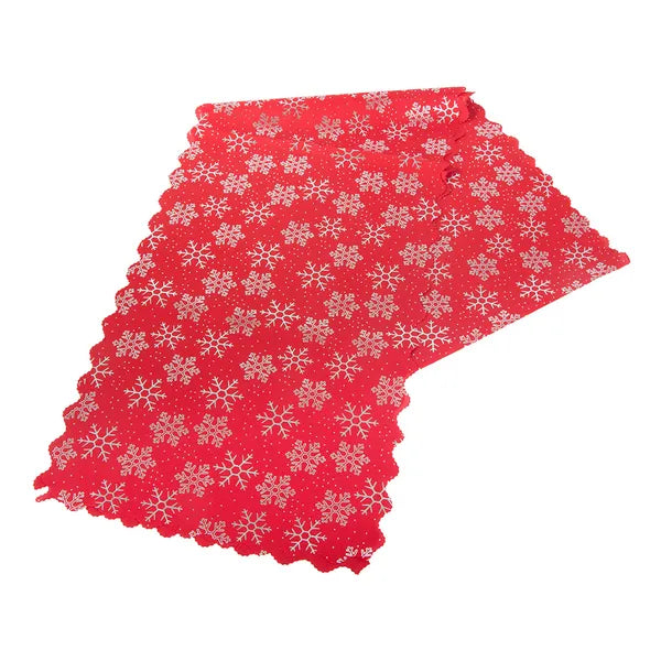 Varázsold ünnepivé az étkeződ megjelenését ezzel a hangulatos, karácsonyi mintákkal díszített asztali futóval! Elegáns, 220×35 cm-es méretének köszönhetően tökéletesen végigfut egy hosszú étkezőasztalon, de komódra vagy dohányzóasztalra helyezve is remekül mutat.