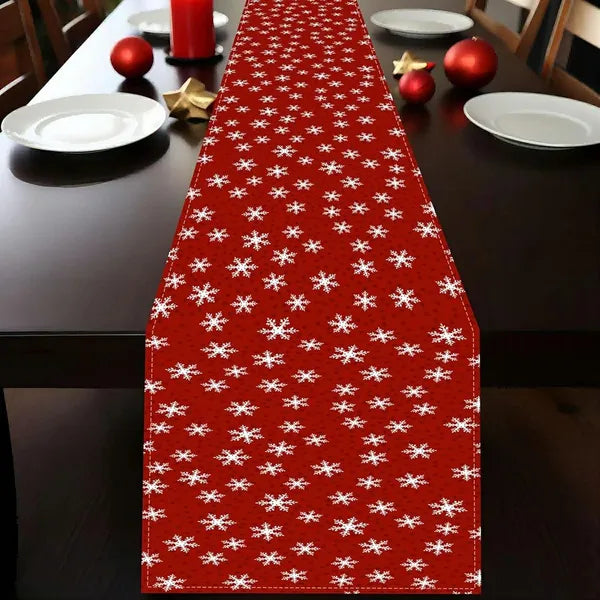 Karácsonyi asztali futó piros-fehér hópelyhekkel 33×275 cm