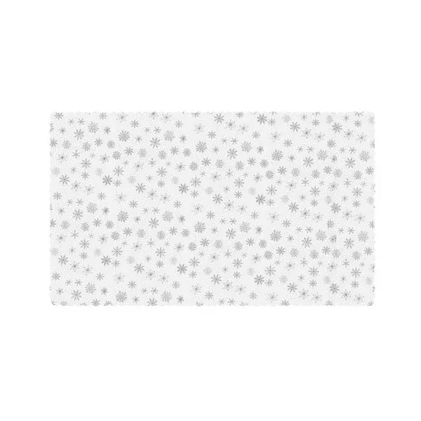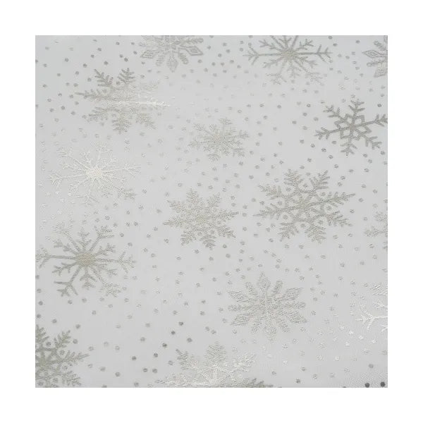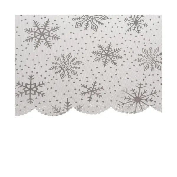 Karácsonyi asztalterítő 220×140 cm, fehér-ezüst hópelyhes, poliészter