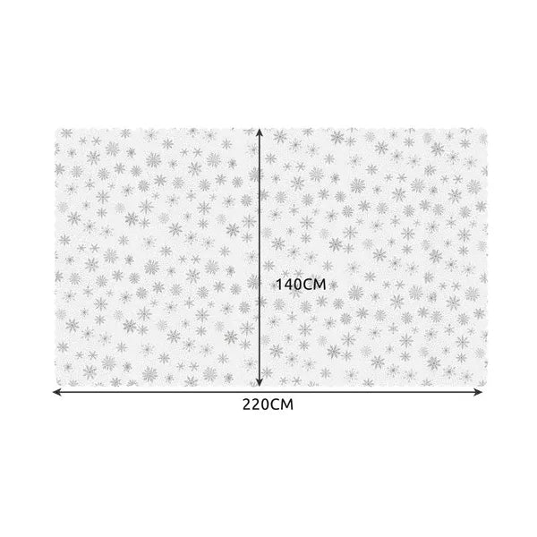 Teremts varázslatos ünnepi hangulatot az asztal körül ezzel a nagy méretű, 220×140 cm-es fehér asztalterítővel, amelyet csillogó ezüst hópelyhek díszítenek. Tartós poliészter anyaga megóvja a bútor felületét a foltoktól és karcolásoktól, miközben elegáns keretet ad a családi étkezéseknek.