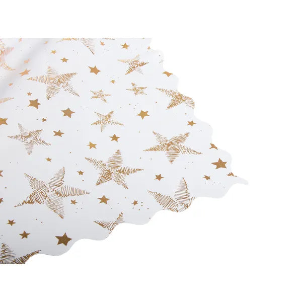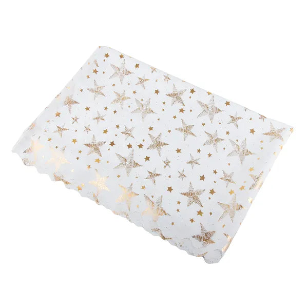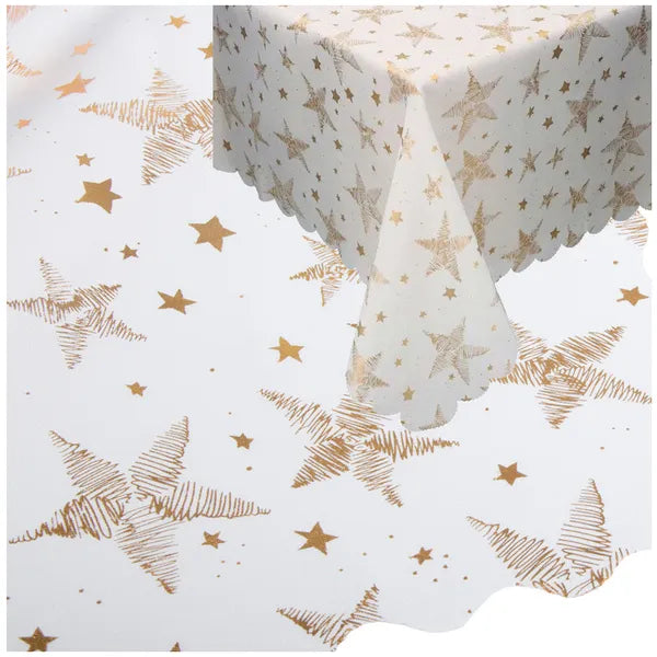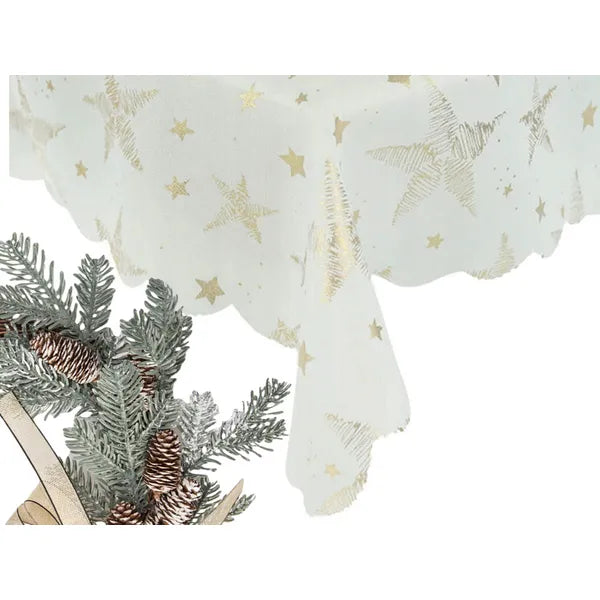 Emeld a karácsonyi vacsora fényét ezzel a fehér, csillag- és hópehelymintás asztalterítővel, amely 140×220 cm-es méretével a nagyobb étkezőasztalokat is elegánsan borítja.