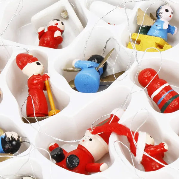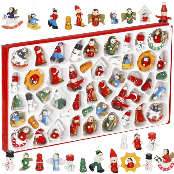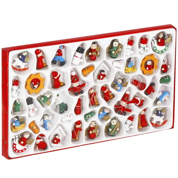 - 48 db változatos fa figura: angyalok, csengők, hóemberek, manók és más motívumok