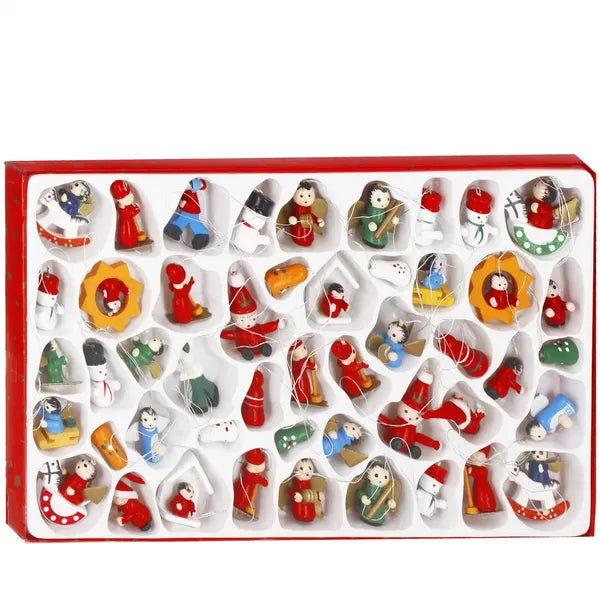 Karácsonyi fa díszek szett 48 db, piros-fehér-zöld figurák akasztóval