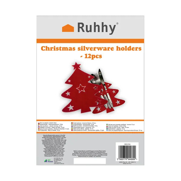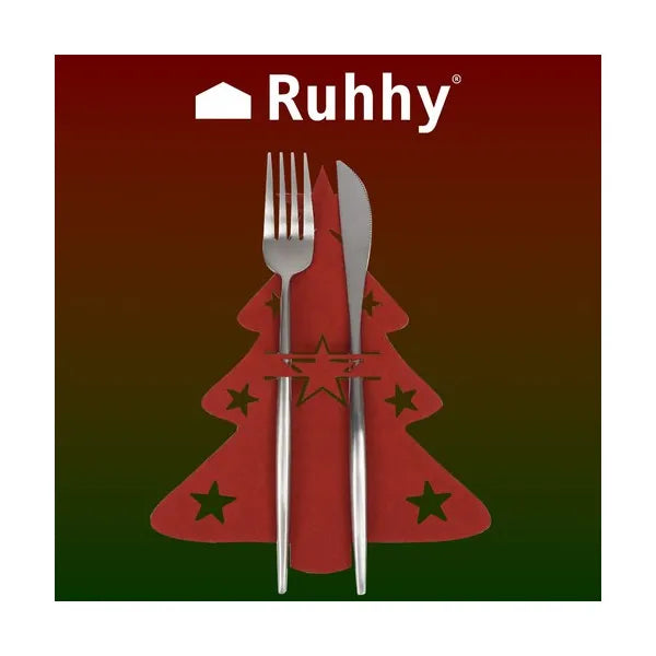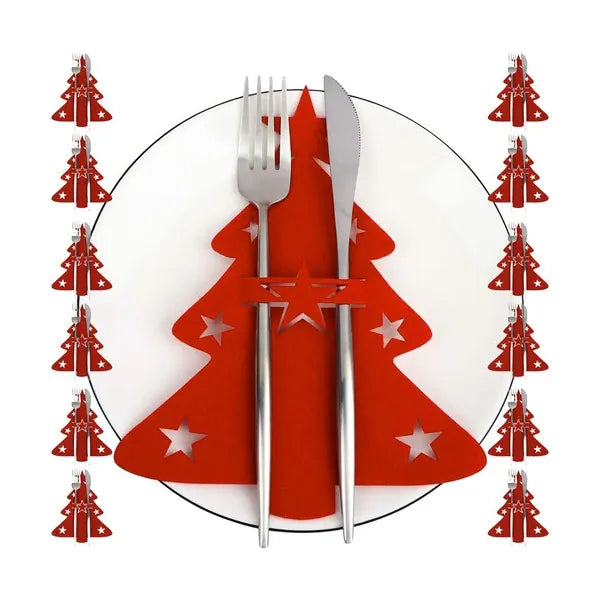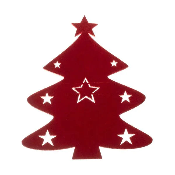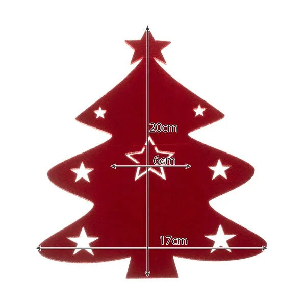 Tegye varázslatossá az ünnepi terítéket ezzel a piros, fenyőfa alakú filc evőeszköztok szettel! A 12 darabos készlet nemcsak praktikus, hanem dekoratív kiegészítője is a karácsonyi asztalnak, és akár poháralátétként is bevethető.