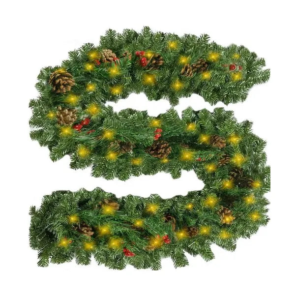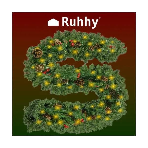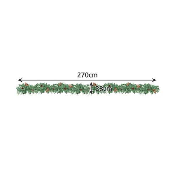 Ragadja meg az ünnepi hangulatot ezzel a 270 cm hosszú, sűrű műfenyő girlanddal, amelyet valósághű fenyőtobozok, piros bogyós ágak és 50 meleg fehér LED lámpa díszít. A hajlékony drótváznak köszönhetően könnyedén formázhatja és elhelyezheti kandallópárkányon, korláton vagy ajtókereten.