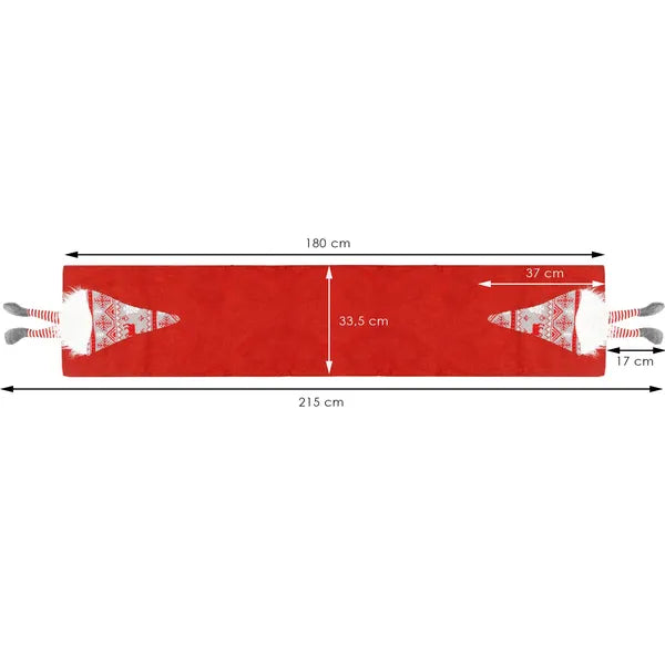 Karácsonyi filc asztali futó gnómlábakkal 215×33,5 cm, piros