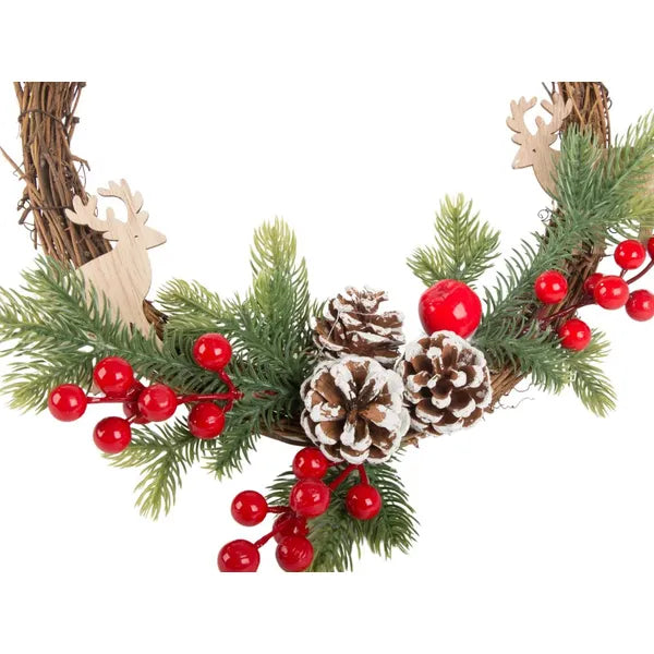 Karácsonyi koszorú tobozokkal 30×25 cm – ajtó, fal és asztal dekoráció
