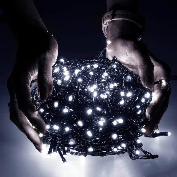 A hideg fehér fényű, 400 LED-es fényfüzérrel pillanatok alatt varázsolhatsz ünnepi hangulatot a nappaliba, az erkélyre vagy a kertbe. Az IP44 vízállósági besorolásnak és a strapabíró, sötétzöld rézvezetéknek köszönhetően beltéren és kültéren egyaránt biztonságosan használhatod.