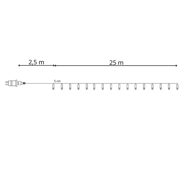 - Teljes hossz: 27,5 m (ebből 25 m világító szakasz + 2,5 m tápkábel)