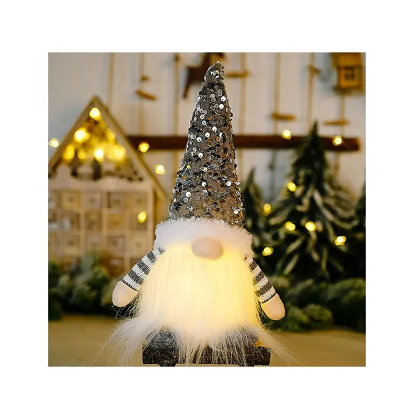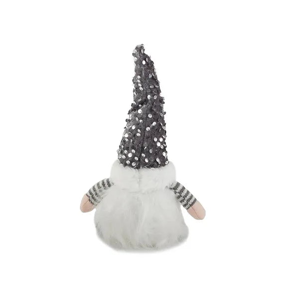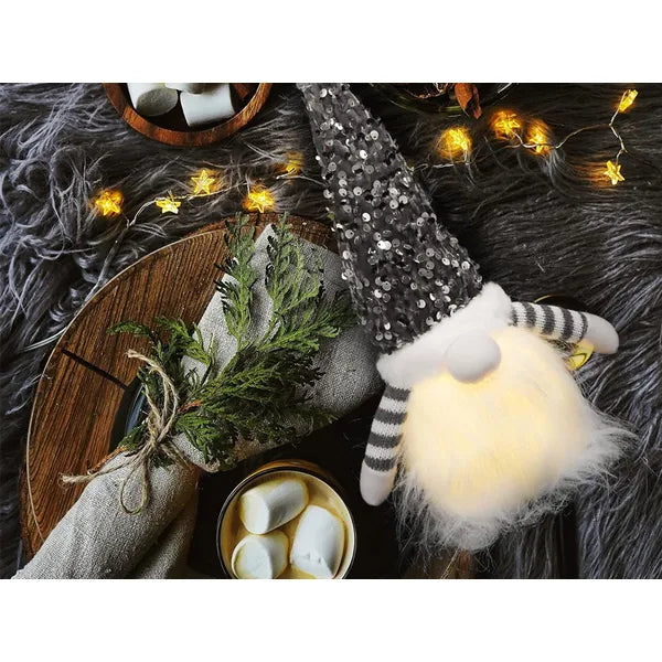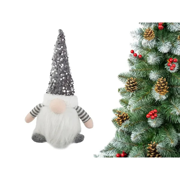 Karácsonyi LED-hasú manó dekoráció, 28 cm, szürke