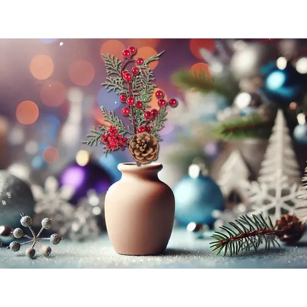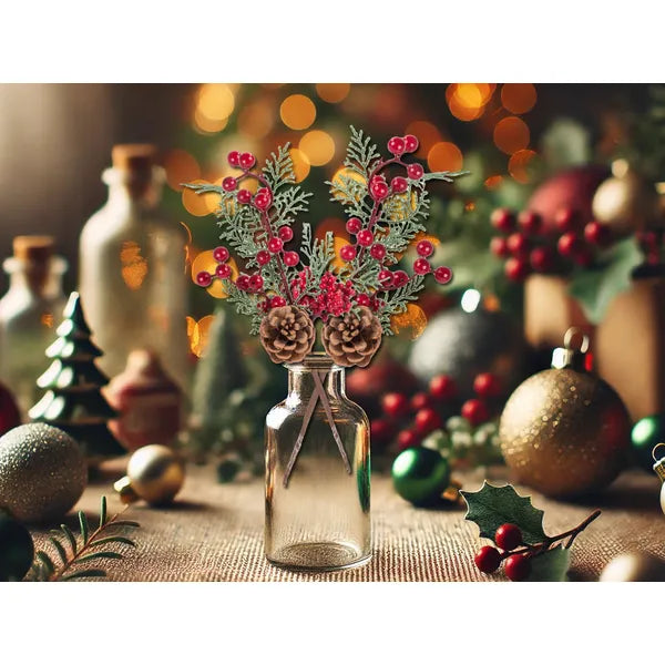 A klasszikus piros-zöld színpár azonnal a karácsony hangulatát idézi, miközben a természetes textúrák melegséget és otthonosságot sugároznak. A precíz kidolgozásnak köszönhetően távolról és közelről is élethűnek hat, így bátran kombinálhatod élő fenyőágakkal vagy más dekorációkkal.