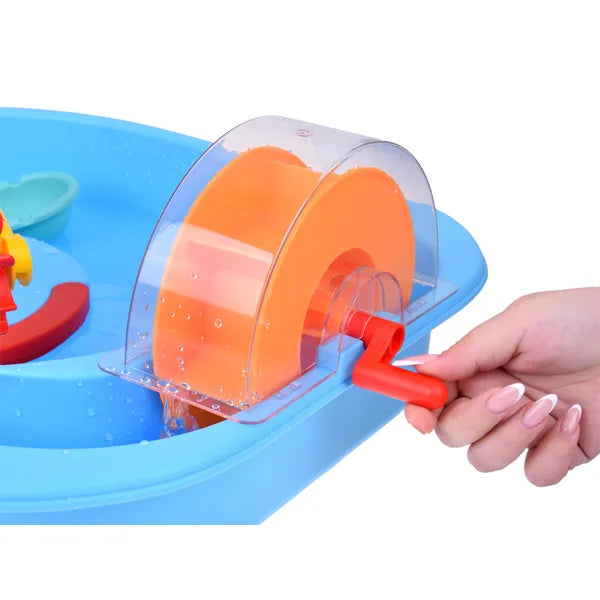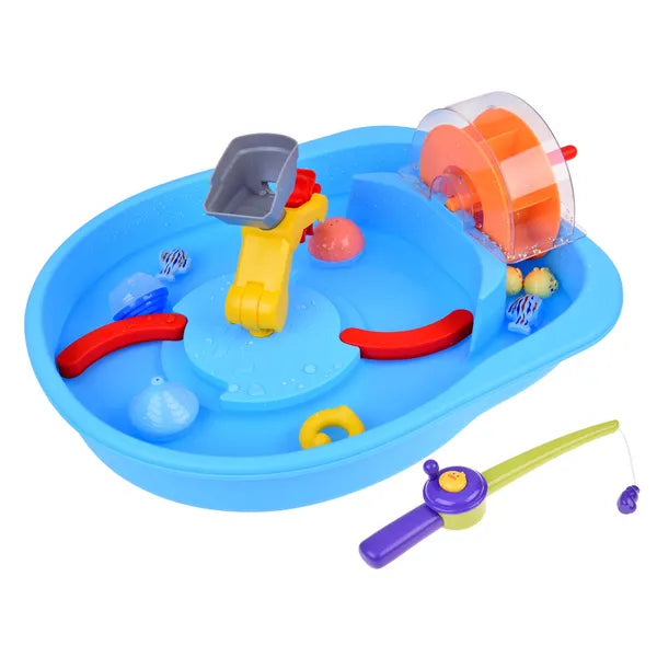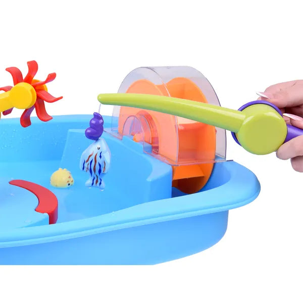 Kék vízijáték asztal vízkerékkel és horgász kiegészítőkkel, 59x48x19 cm