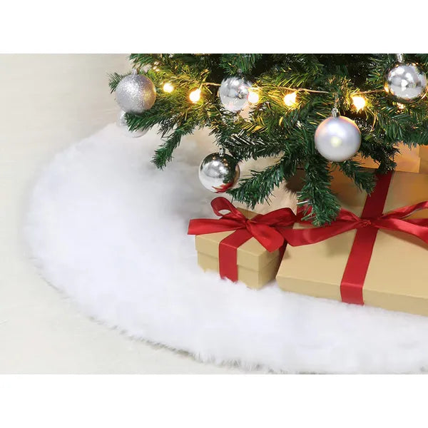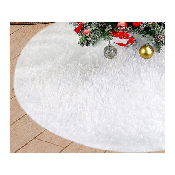 Ünnepi hangulatot és eleganciát visz nappalidba ez a puha, fehér műszőr karácsonyfa szőnyeg. A 90 cm átmérőjű, kör alakú takaró kellemes hátteret biztosít az ajándékoknak, elrejti a talpat, és megóvja a padlót a tűlevelektől.
