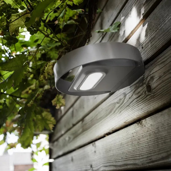 A kerek napelemes fali LED lámpa ideális megoldás teraszra, kertbe vagy nyaraló falára, ahol elegáns, vezeték nélküli fényt szeretnél. A beépített monokristályos panel napközben tölti a 2200 mAh-ás Li-ion akkumulátort, így sötétedéskor a fényérzékelő automatikusan bekapcsolja a 4000 K-es semleges fehér fényt.