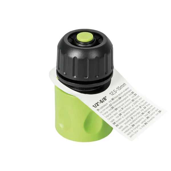A stop funkcióval ellátott gyorscsatlakozó megkönnyíti a kerti tömlők gyors le- és felszerelését, miközben vízelzárás nélkül cserélhető a szórófej vagy megszakítható az öntözés. A rozsdamentes acélból készült szorítómechanizmus hosszú élettartamot és megbízható tömítést biztosít, a UNI FIT™ technológia pedig kompatibilitást nyújt a legtöbb szabványos 1/2" (12,5 mm) és 5/8" (15 mm) tömlővel.