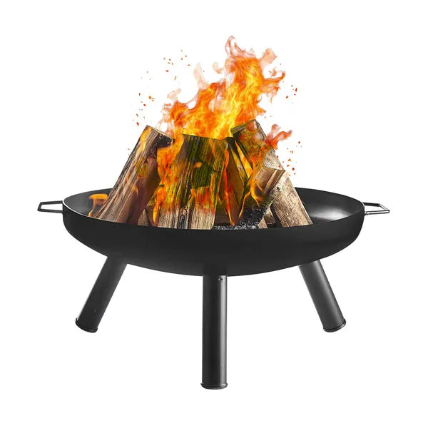 Kerti tűztál 60 cm fekete vas, háromlábas fogantyúkkal