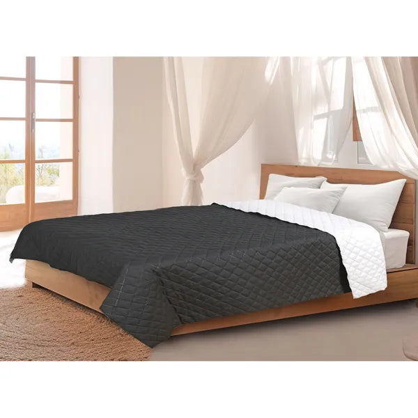 Kétoldalas steppelt ágytakaró 220x240 cm, fehér-fekete mikroszálas