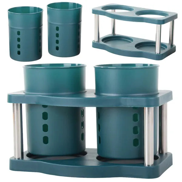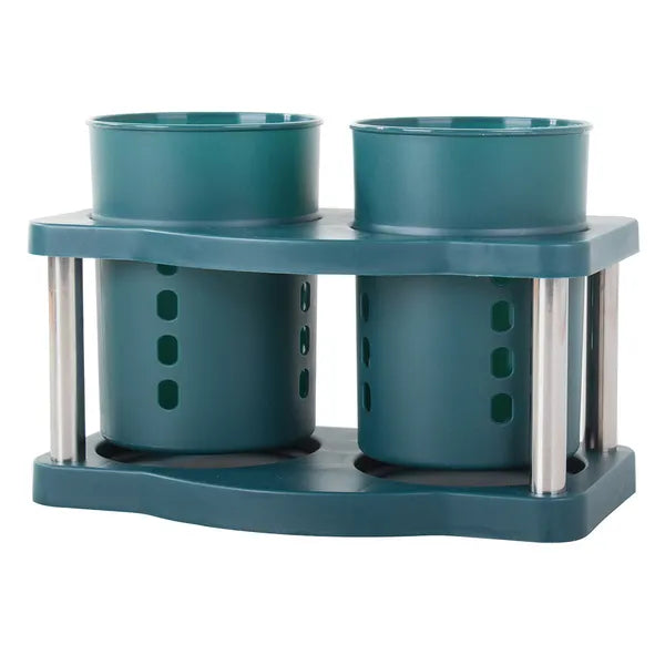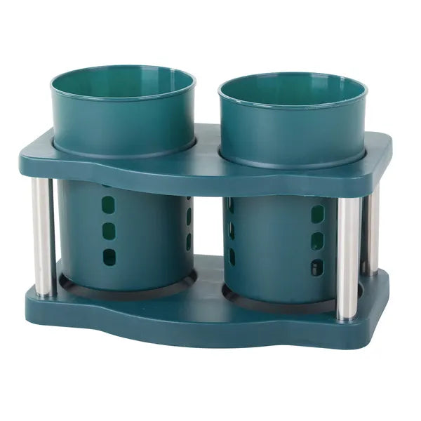 Kétrekeszes zöld evőeszköz szárító és rendező, 19×9,5×10 cm