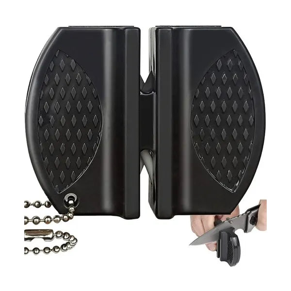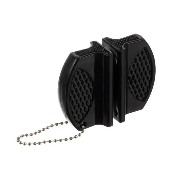 A kompakt, kétszakaszos késélező volfrám-karbid és kerámia betétekkel pillanatok alatt visszaadja kései, ollói vagy zsebkései borotvaélességét. Csúszásmentes gumitalpai stabilitást, ergonomikus markolata biztonságos fogást nyújt, a mellékelt lánc pedig lehetővé teszi, hogy hátizsákra, övhurokra vagy kulcscsomóra akasztva mindig kéznél legyen.